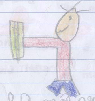 "Quando tem folhas na varanda, a minha mãe vai buscar um saco e uma pá e põe as folhas na pá e depois no saco."