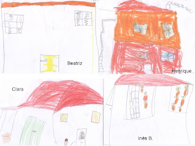 As frases foram surgindo, as ideias discutidas, tudo foi registado no quadro. Até se colocavam de pé e pulavam de dedo no ar à espera da sua vez de continuar a história!
