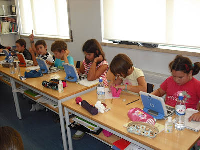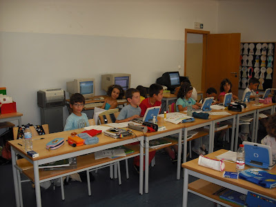 Nestas fotos vemos os nossos meninos no primeiro dia do processamento de texto, muito empenhados com os seus portáteis: