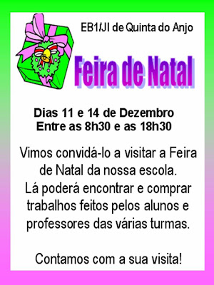 Quero deixar o meu agradecimento especial aos pais que, tendo sido convidados a estar presentes na feira para vender nas horas lectivas, se disponibilizaram de imediato, tal como sempre acontece, e vão ser um ajuda preciosa.