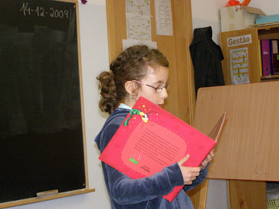 A Clara lê "Quem dá prenda ao Pai Natal?", de Alexandre Honrado