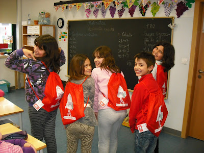 Ontem foi o primeiro dia do Projecto "Já sei ler" e cinco alunos já levaram para casa as ditas mochilas.